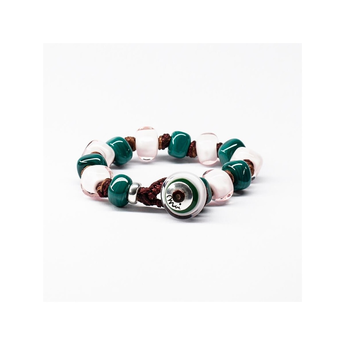 Original Moi Herren- und Damenarmband mit Stoffkordel und Muranoglasperlen Rosa und Grün, Designer Franco Cannarile - Cloe