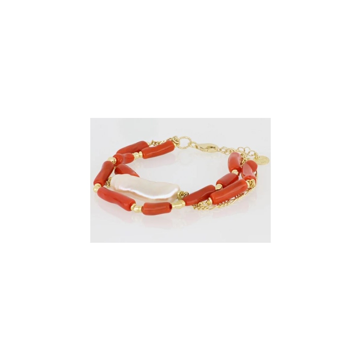 Nivy Damenarmband, aus der Dory-Kollektion, aus vergoldetem 925er Silber mit Koralle und Barockperlen.