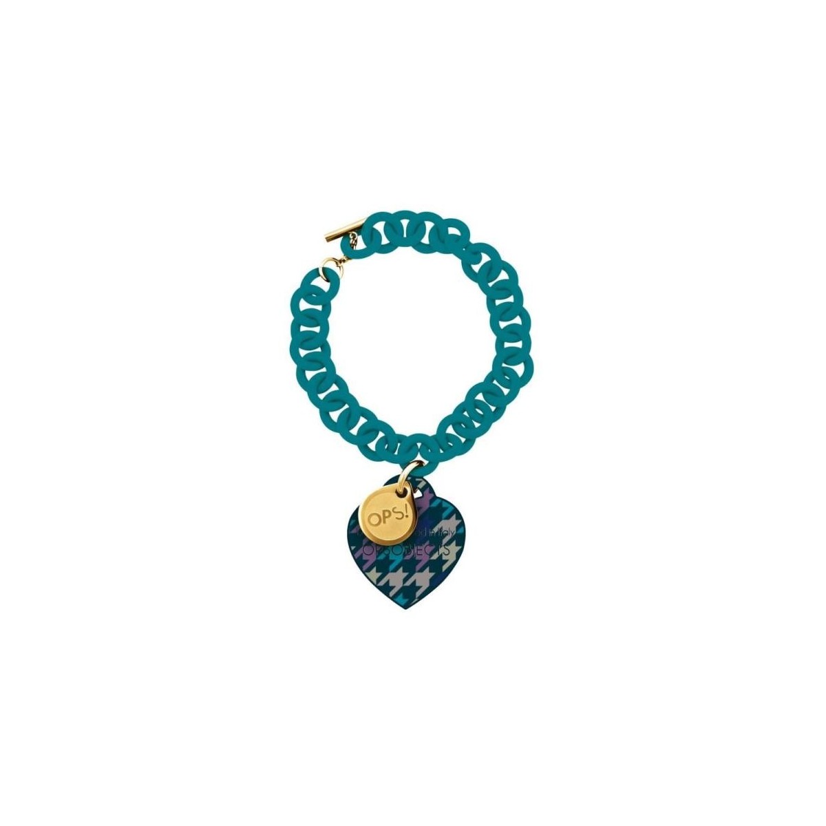 Soft-Touch-Harz-Kette. Herz, texturierte Silikon Houndstooth. OPS Stahl-Tag. T-Bar-Verschluss