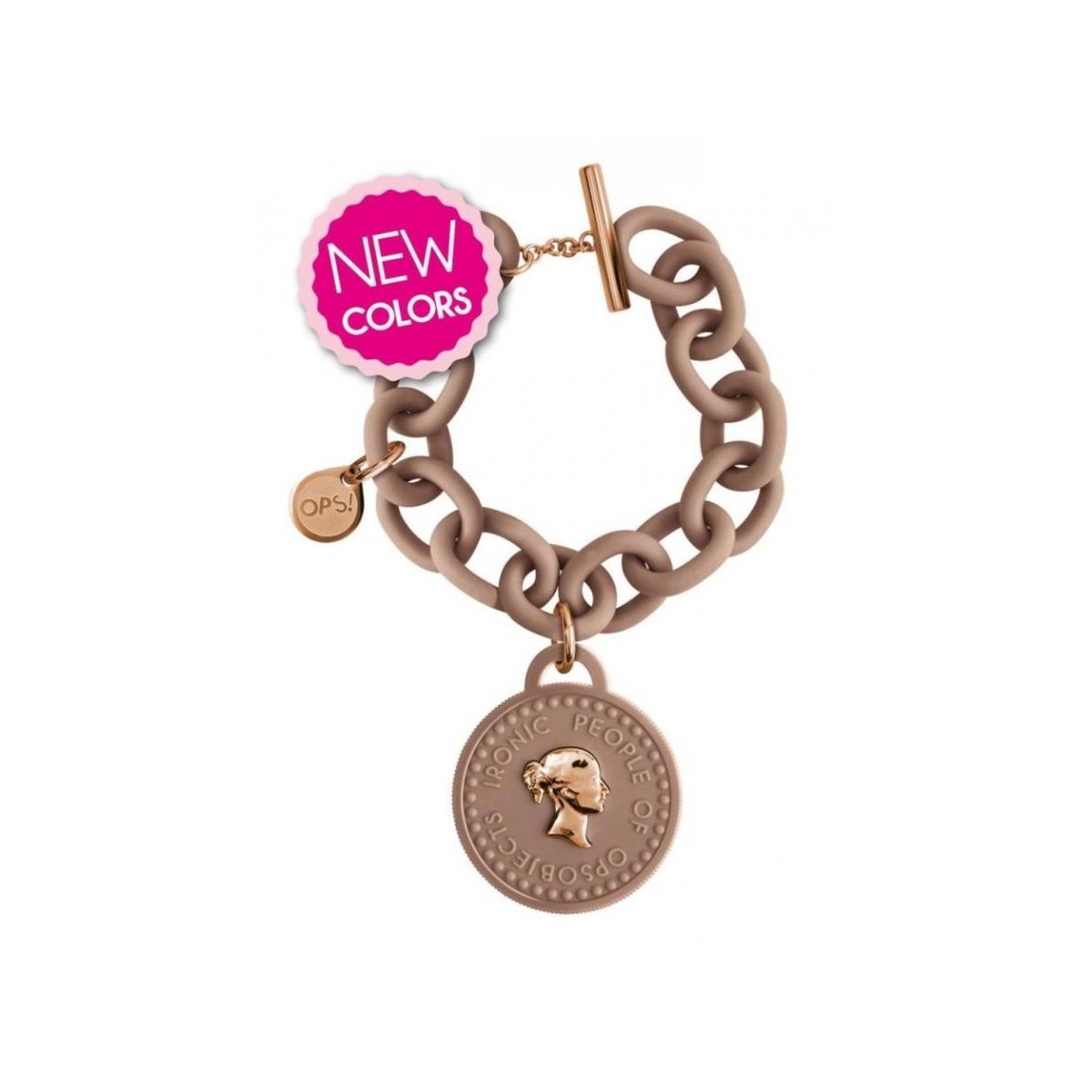 OPSOBJECTS startet eine brandneue Armband, die "unvergessliche achtziger", mit dem sexy und glamouröse Trend der Reize in Form von Münzen inspirieren. Variation, ein oder fünf Charme, ausgedrückt in 10 Farben, damit das Zubehör muss, in diesem Frühjahr Sommer verschönern können Kleider und plissierten Röcke Flüssigkeiten wie weitere Felsen hergestellt aus Wildleder und Leder Outfits Töne. Alle Münzen sind parfümiert und hat einen doppelten Gesicht-Stil: einerseits die unverwechselbare Loghetto "Hoppla!", die andere eine ironische Frau des Gesicht, beide in Silber lackiert Gold & Polycarbonat. Die XL-Kette präsentiert 15 Oval Masche, das berühmte Label "OPS" und das abschließende "T" Bar Silber Stahl & Gold.
