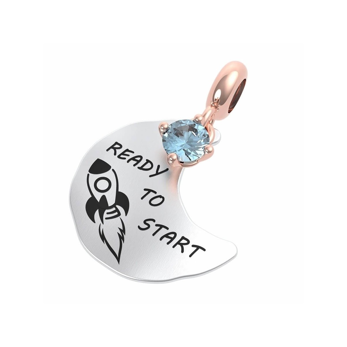 Bereit zum Start; mondförmiger Anhänger aus 925er Silber mit rosévergoldetem Ring, passend für Armband oder Halskette, Kollektion Rerum Gioielli
