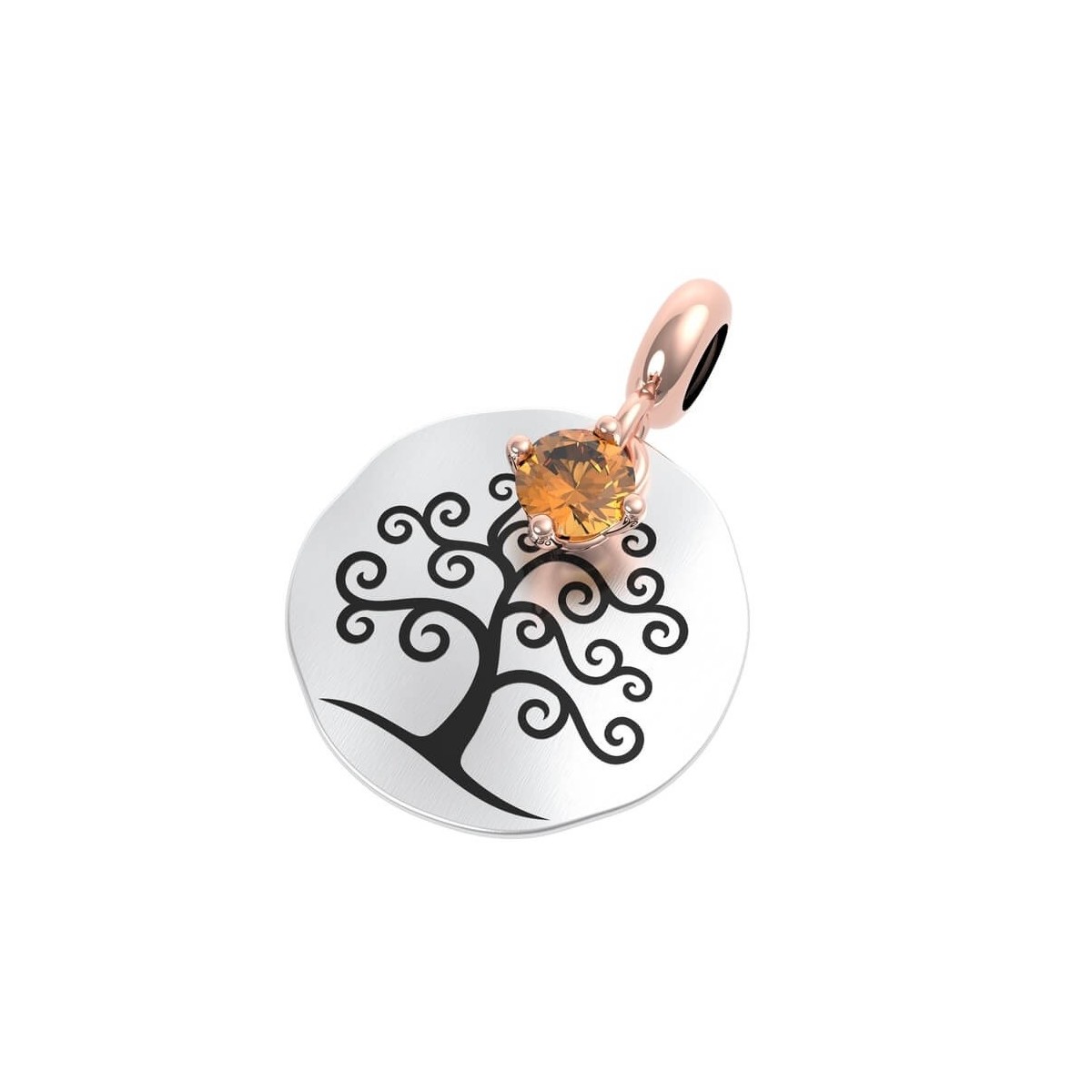 Baum des Lebens; Münzförmiger Anhänger aus 925er Silber mit rosévergoldetem Ring, passend für Armband oder Halskette, Kollektion Rerum Gioielli
