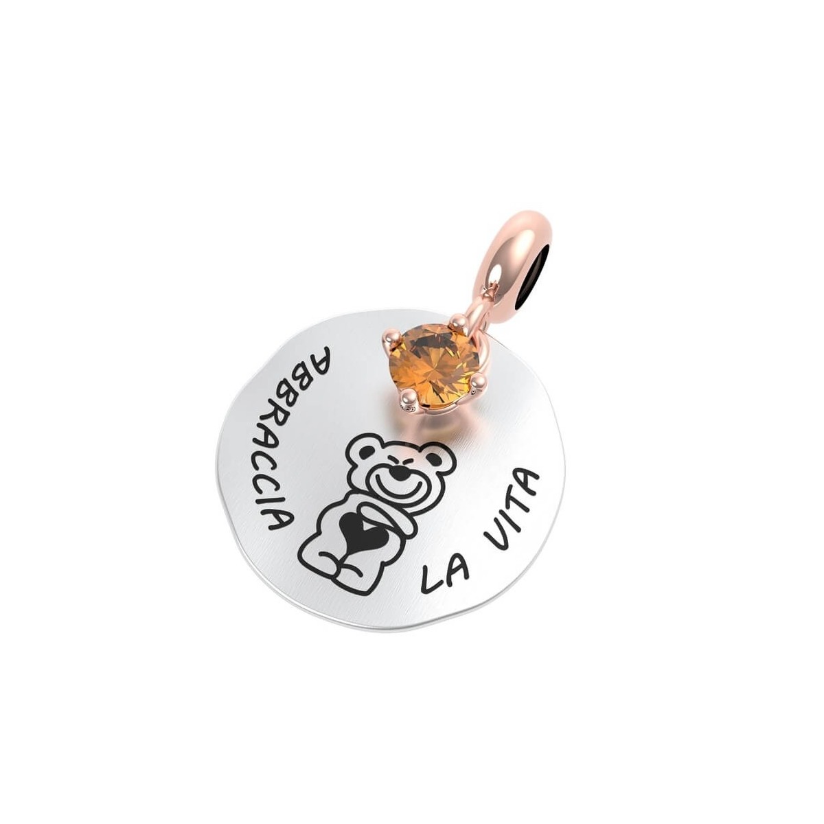 Das Leben genießen; Münzförmiger Anhänger aus 925er Silber mit rosévergoldetem Ring, passend für Armband oder Halskette, Kollektion Rerum Gioielli