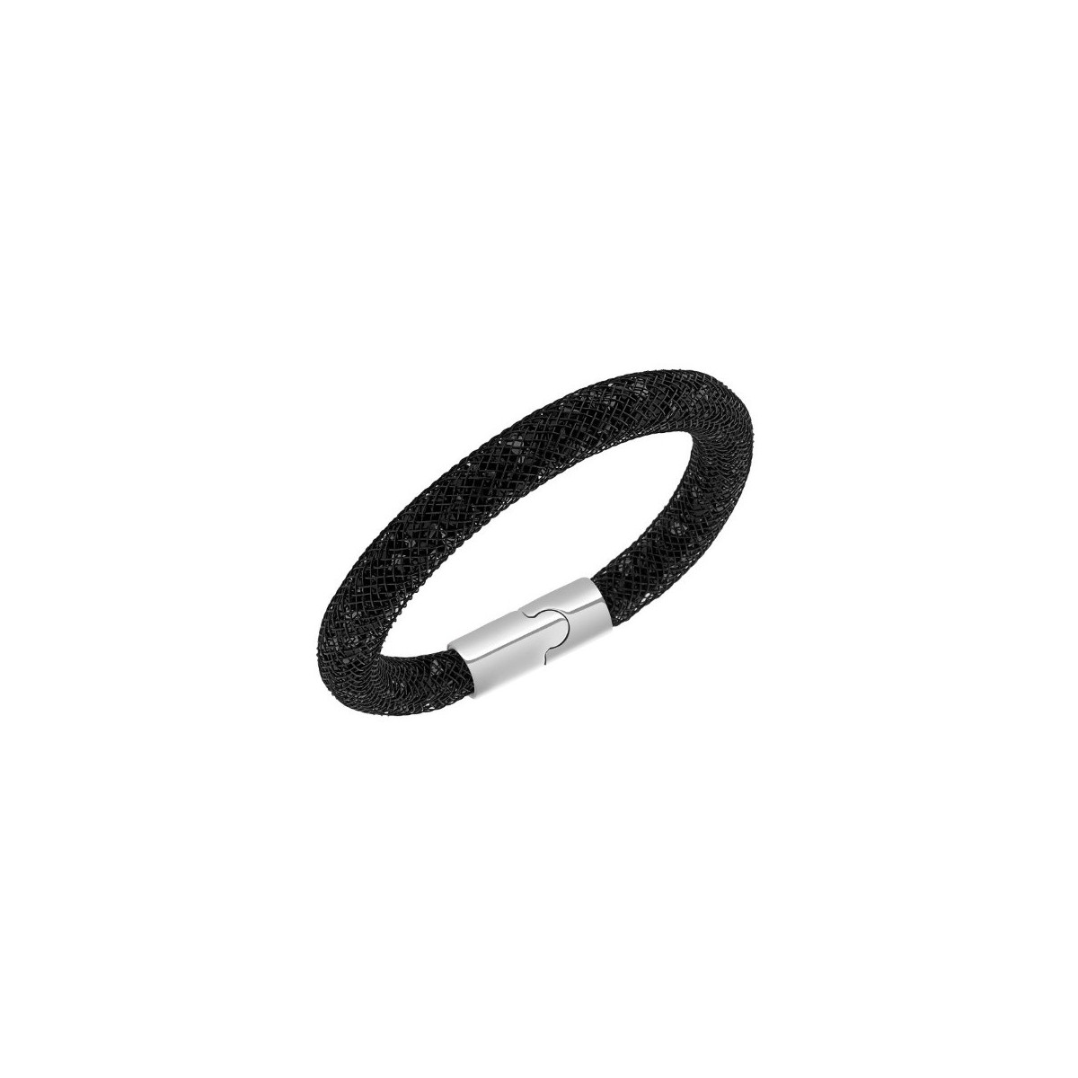 Markieren Sie Ihren Stil durch den Widerhall dieses diskrete unumgängliches Armband hinzufügen. Das Netz der tubulären Nylon, hält eine Vielzahl von winzigen schwarzen Kristallen. Die Einrichtung wird ergänzt durch einen praktischen magnetischen Palladiato aus Metall und ist in zwei Längen erhältlich.