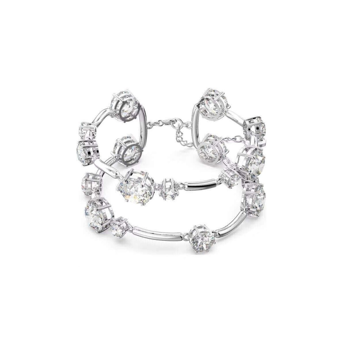 Starres Damenarmband von Swaroski aus der Constella-Kollektion. Hergestellt auf einem rhodinierten Rahmen und verziert mit abwechselnd kleinen weißen Kristallen mit rundem Schliff und unterschiedlichen Größen, die Glanz verleihen.