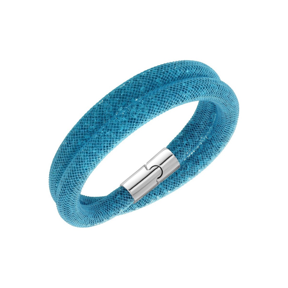 Swarovski Armband Türkis Größe M Doppel Stardust aus Nylon und Glas mit Metall Silber palladiato