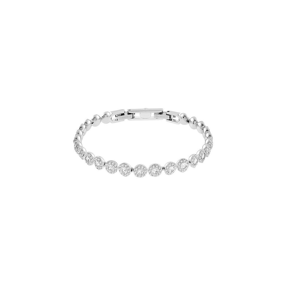 Ein zeitloser Klassiker. Das rhodinierte Armband bietet eine Reihe von Clear Crystal-Kreisen an, die jeweils von Clear Crystal Pavé umrahmt werden. Das Schmuckstück passt perfekt zu den anderen Accessoires der Kollektion Angelic.