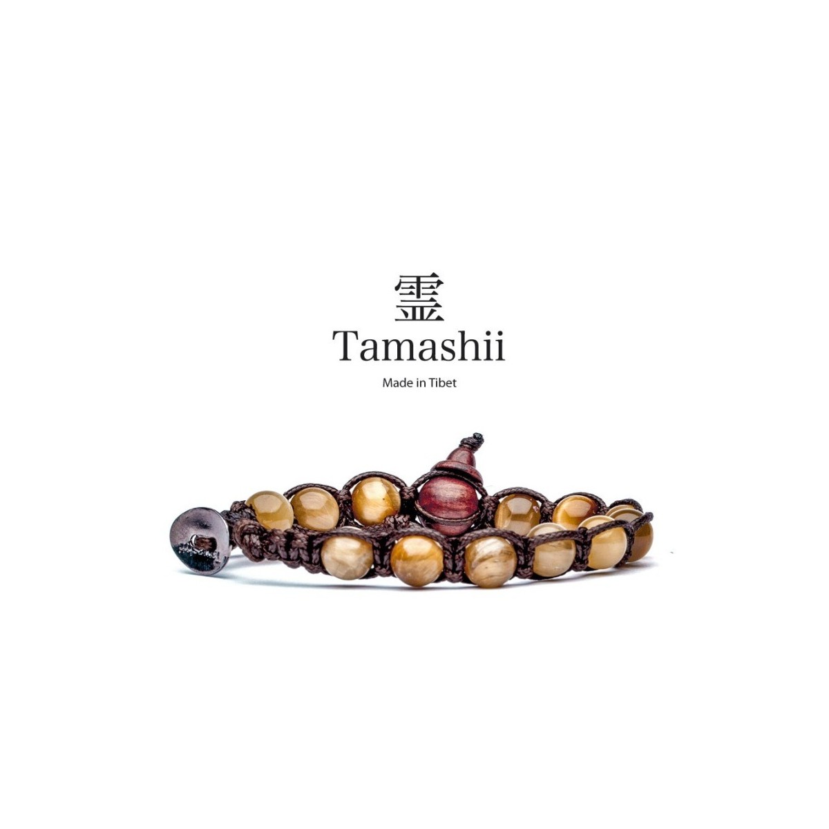 Natürliche Steine goldenes Armband mit Tiger Auge Farbe Ocker und braun mit Seil, tibetische original tg Unisex: Talisman nur