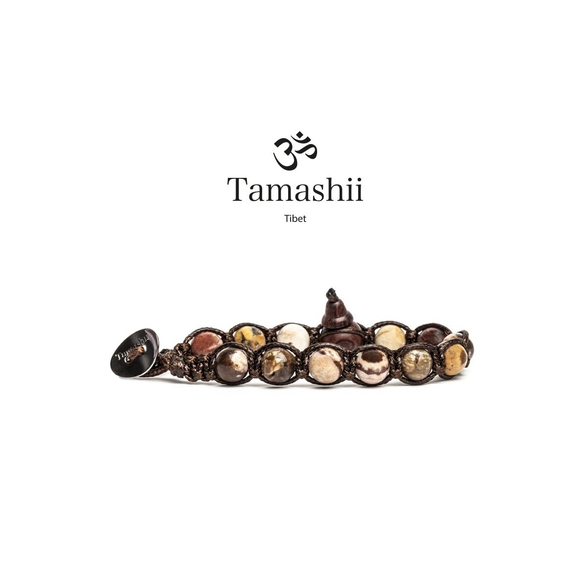 Einteiliges Unisex-Armband (Einheitsgröße für alle Handgelenkdurchmesser) aus Hindu-Diaspro-Steinen, verbunden mit einer gewachsten Baumwollschnur. Hindu-Jaspis ist ein Halbedel-Petra, das hilft, Schuldgefühle zu überwinden, Selbstvertrauen und Selbstvertrauen zu gewinnen, um dem Leben mit größerer Dynamik entgegenzutreten.