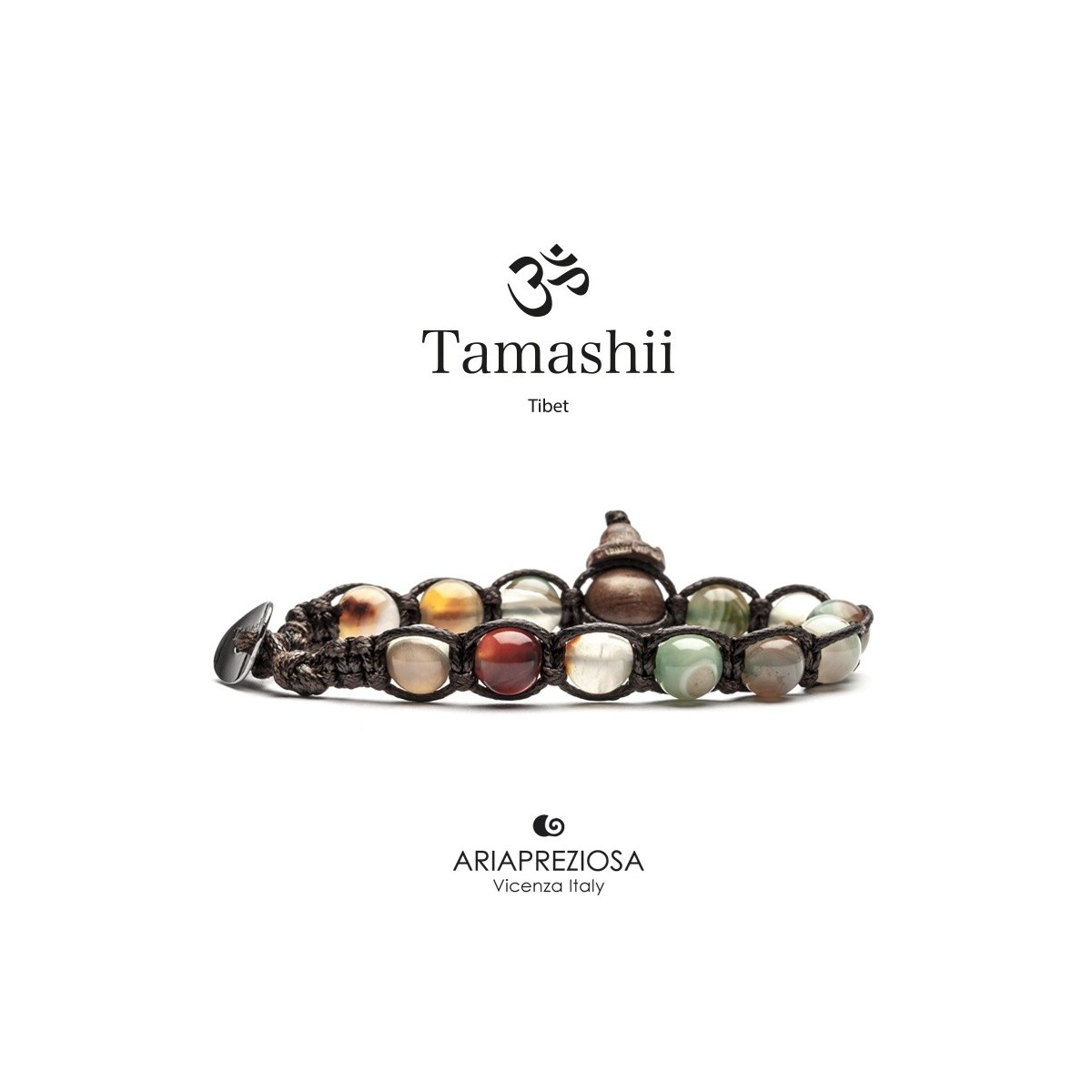 Einteiliges Unisex-Armband mit Einheitsgröße (es passt sich jedem Handgelenk-Durchmesser an) aus Steinen, die mit einer gewachsten Baumwollkordel verbunden sind. Naturstein von gelbgrün bis dunkelgrün, der auf den Amoghasiddhi Buddha zurückzuführen ist, der nach Erfolg, Reichtum und Macht strebt. Diese Tamashii verwandelt Stolz in Weisheit der Identität. Die Streifungen verleihen jedem Stein Einzigartigkeit, werden jedoch als Metapher betrachtet, um die grundlegende Gleichheit aller Lebewesen zu unterstreichen. Jedes Armband wird mit Originalverpackung und Garantiezertifikat geliefert