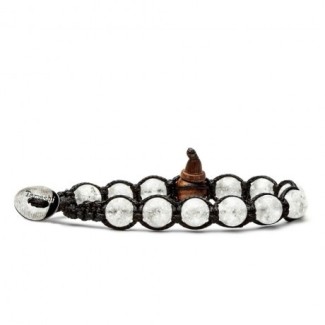 Ursprüngliches tibetisches Talisman-Mann-Frauenarmband mit Natursteinen in Bergkristallfarbe weiß geädert und Holz-Cabala; schwarze Schnur mit einstellbarer Länge