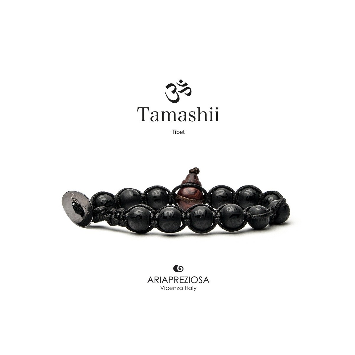 Einteiliges Unisex-Armband mit Einheitsgröße (es passt sich jedem Handgelenk-Durchmesser an) aus Steinen, die mit einer gewachsten Baumwollkordel verbunden sind. Schwarzer Stein par excellence wird der Onyx von kämpfenden Mönchen verwendet, um Mut und Selbstwertgefühl zu verbreiten. Schwarz für den Buddhismus repräsentiert auch die ursprüngliche Dunkelheit des Menschen, Hass und Gewalt. Tamashii in schwarzem Onyx macht aus diesen negativen Kräften Positives, Böses zu Gutem, Hass zu Mitleid. Diese Version des Armbandes präsentiert eine schöne glänzende Arbeit des kontrastierenden Mantras. Jedes Armband wird mit Originalverpackung und Garantiezertifikat geliefert