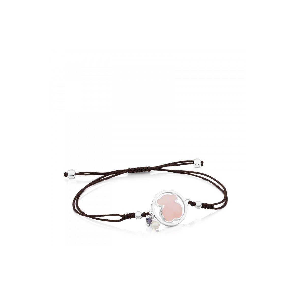 Nylon Armband mit rosa Quarz Armband in einem Sterling Silber, Perle und Iolit Rahmen