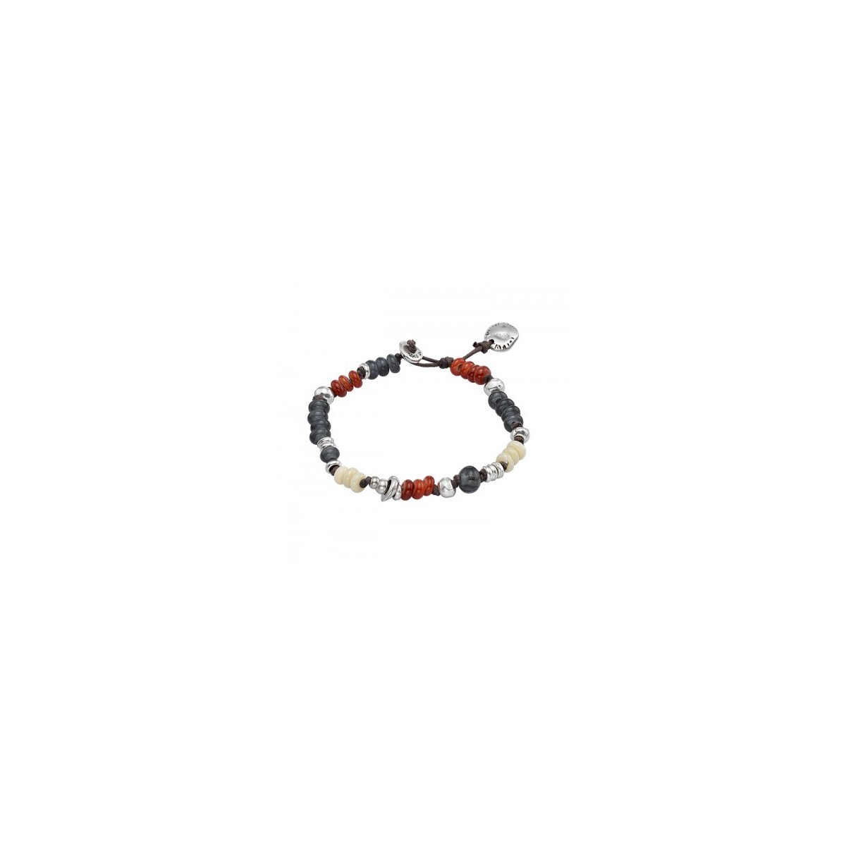 Armband-Leder Schnur auf die bestehen aus einer montierten Kristalle von verschiedenen Farben, Korallen und Silber beschichteten Metall Nuggets, alle Schattierungen von weiß, grau und Korallen