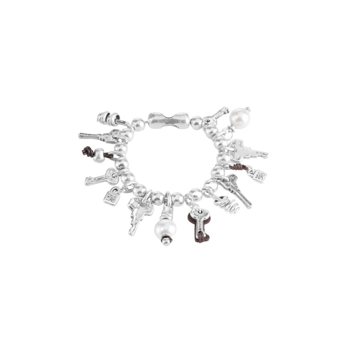 Silber-vergoldete Armband Kollektion Sommer 2017 mit vielen Schlüssel-Anhänger und Dekorationen und Pearl-PUL1520BPLMTLOM