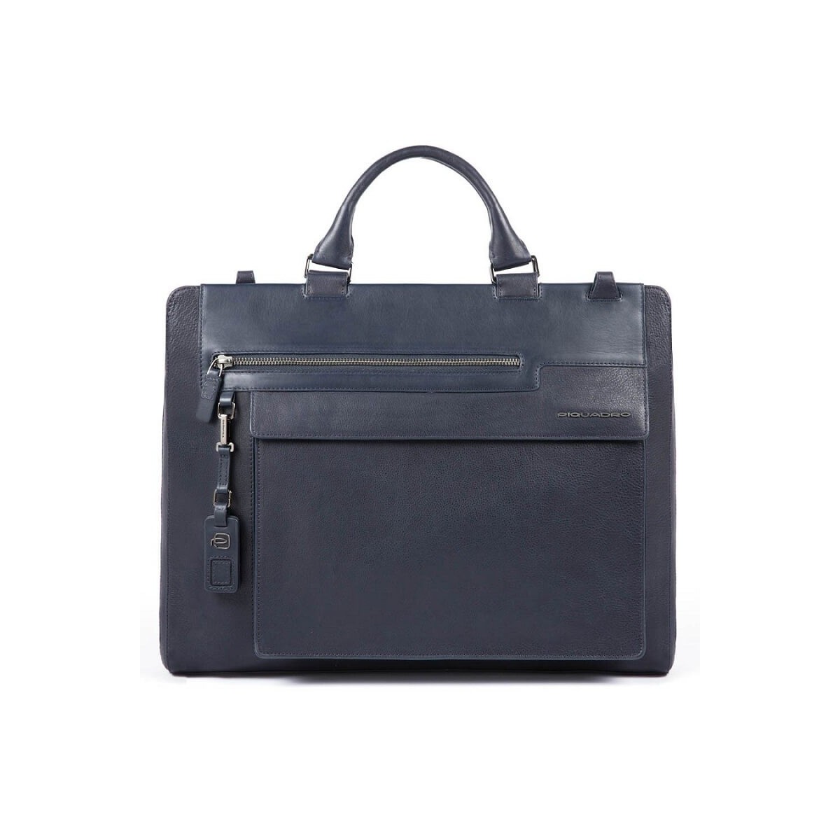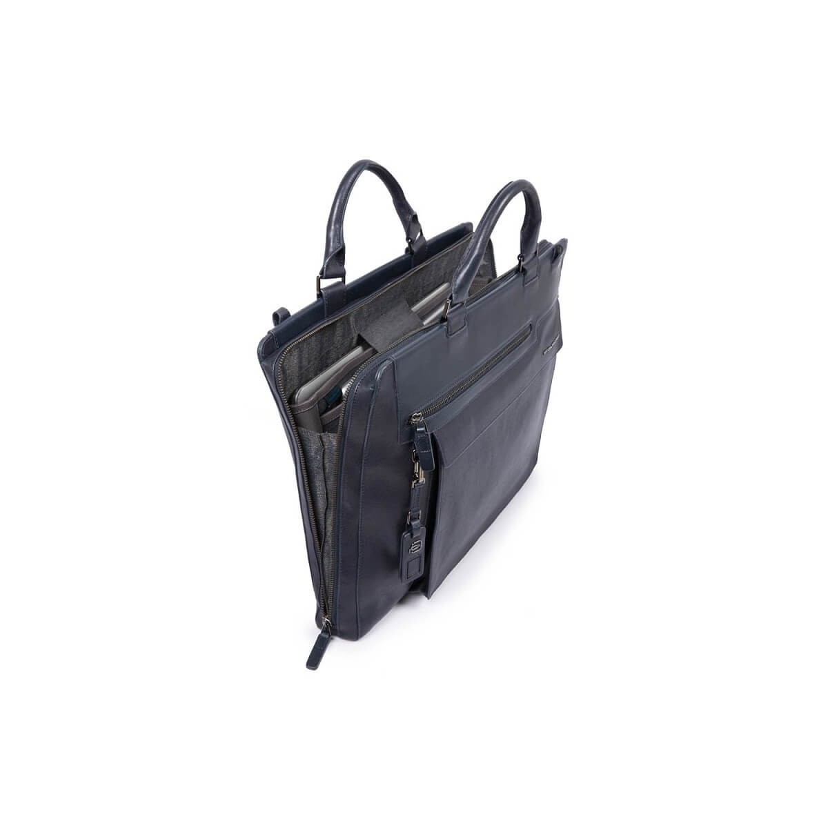 Herrenaktentasche aus Leder aus der Wostok-Kollektion mit zwei blauen Computergriffen