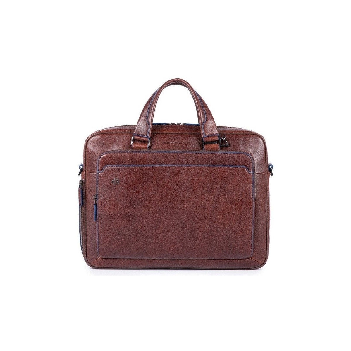 Aktentasche Mann Frau aus der Blue Square Kollektion in braunem Leder mit blauem Profil
