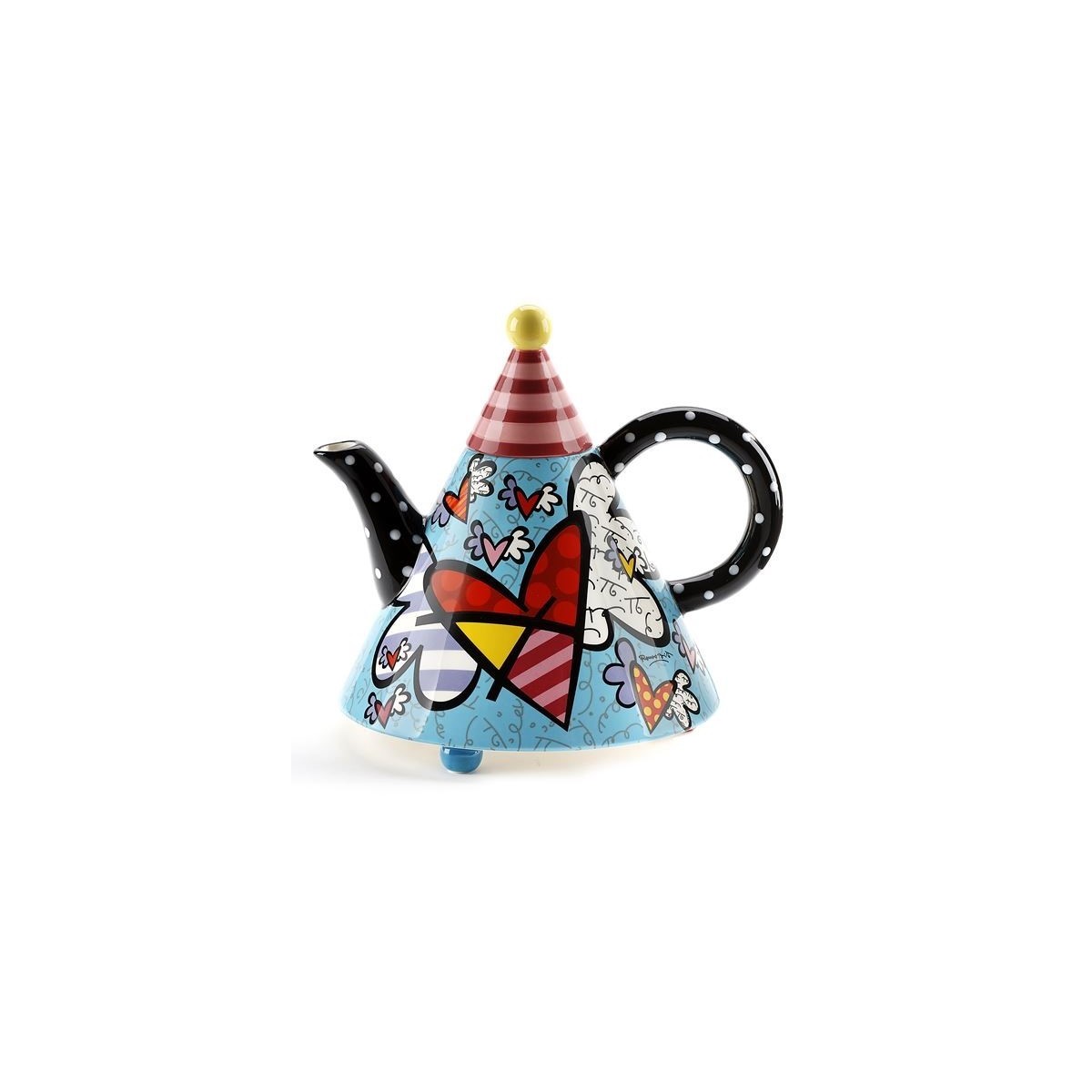 Kegelförmige Phantasie verziert Keramik Teekanne Herz mit Flügeln mit Griff und Ausguss Tupfen und Streifen abdecken. Entworfen von dem brasilianischen Künstler