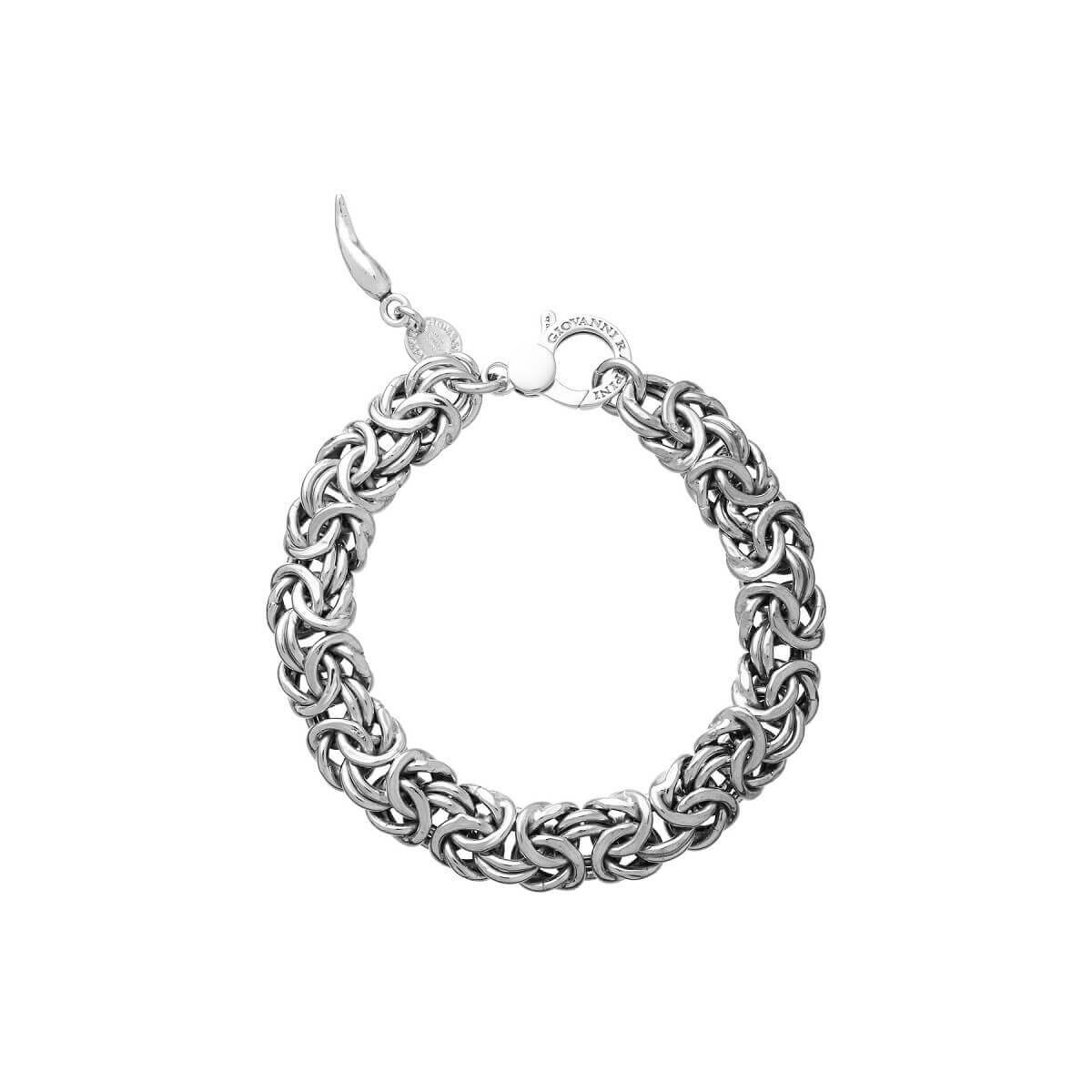 Giovanni Raspini Caesar line Damenarmband aus der Chains-Kollektion, inspiriert von byzantinischen, aber flachen Maschen, aus Silber 925. Ein Armband mit zeitlosem Stil, das sich durch ineinander verschlungene Ketten auszeichnet, die selbst zu einem Juwel werden.