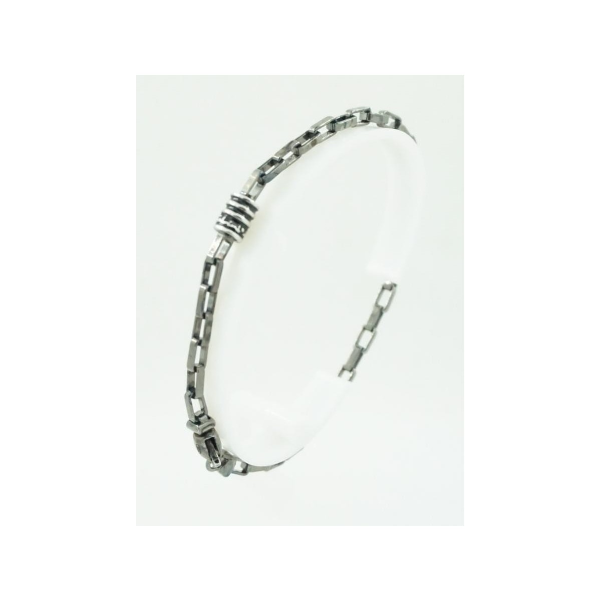 925 Silber Armband Kette weichen brüniert mit röhrenförmigen Logo Snap-Verschluss 21 cm