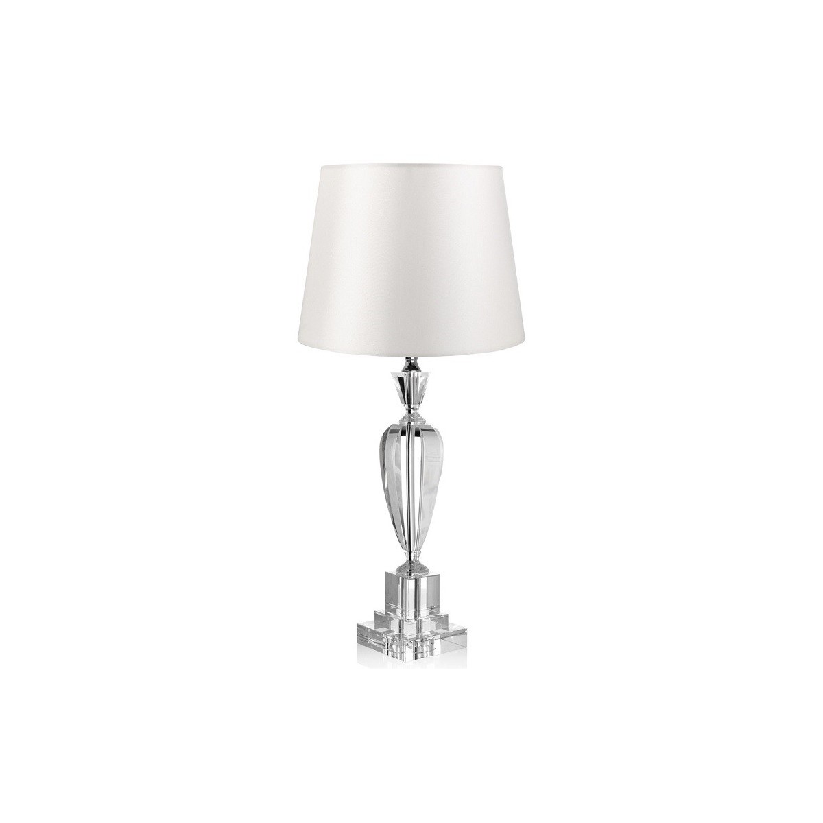 Tischleuchte mit Kristallboden und weißem Stoff Lampenschirm SCHÖNE H 71 CM OTTAVIANI HOME