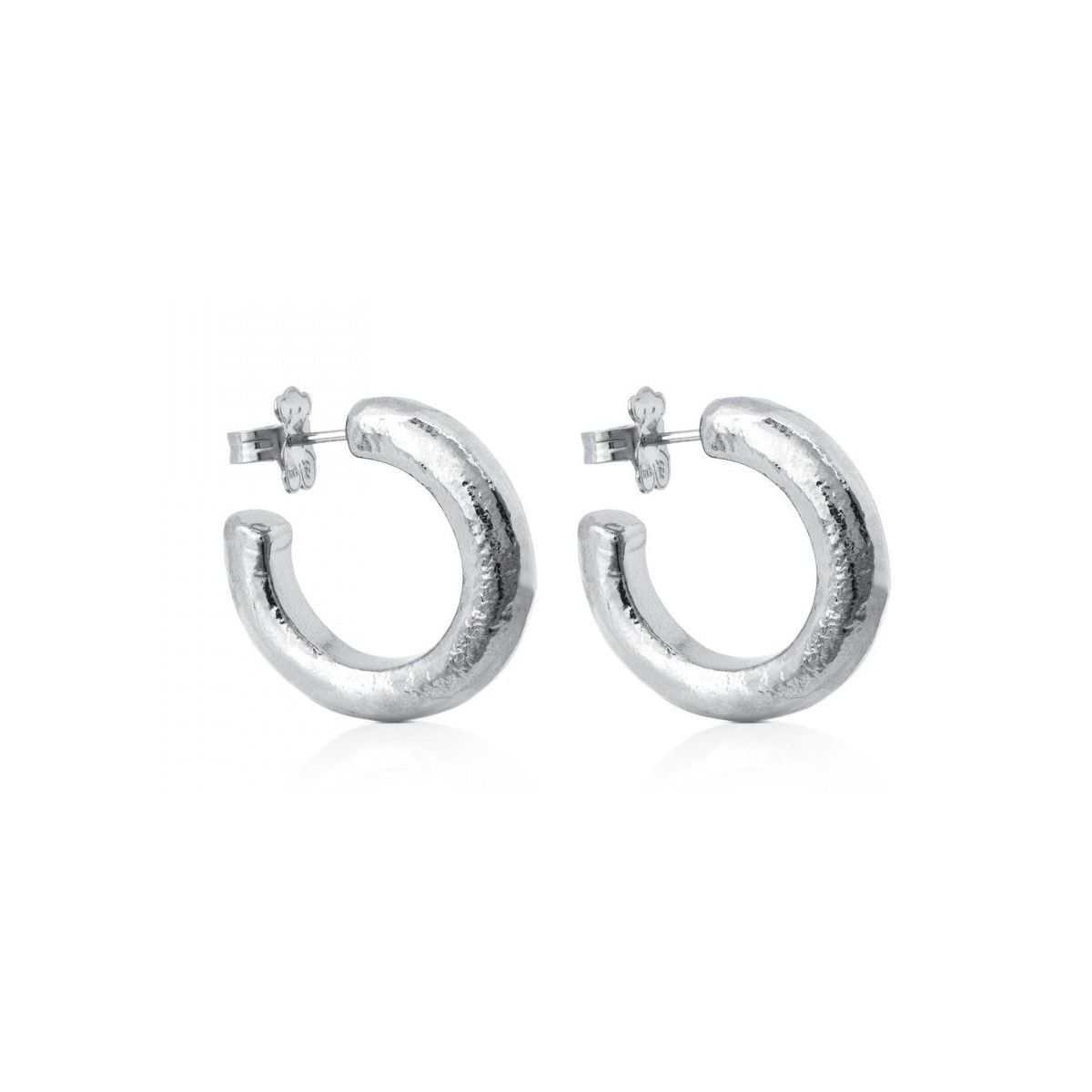 Tous Schlauchring Ohrringe mit gehämmerten Satin Silber Lappen Verschluss