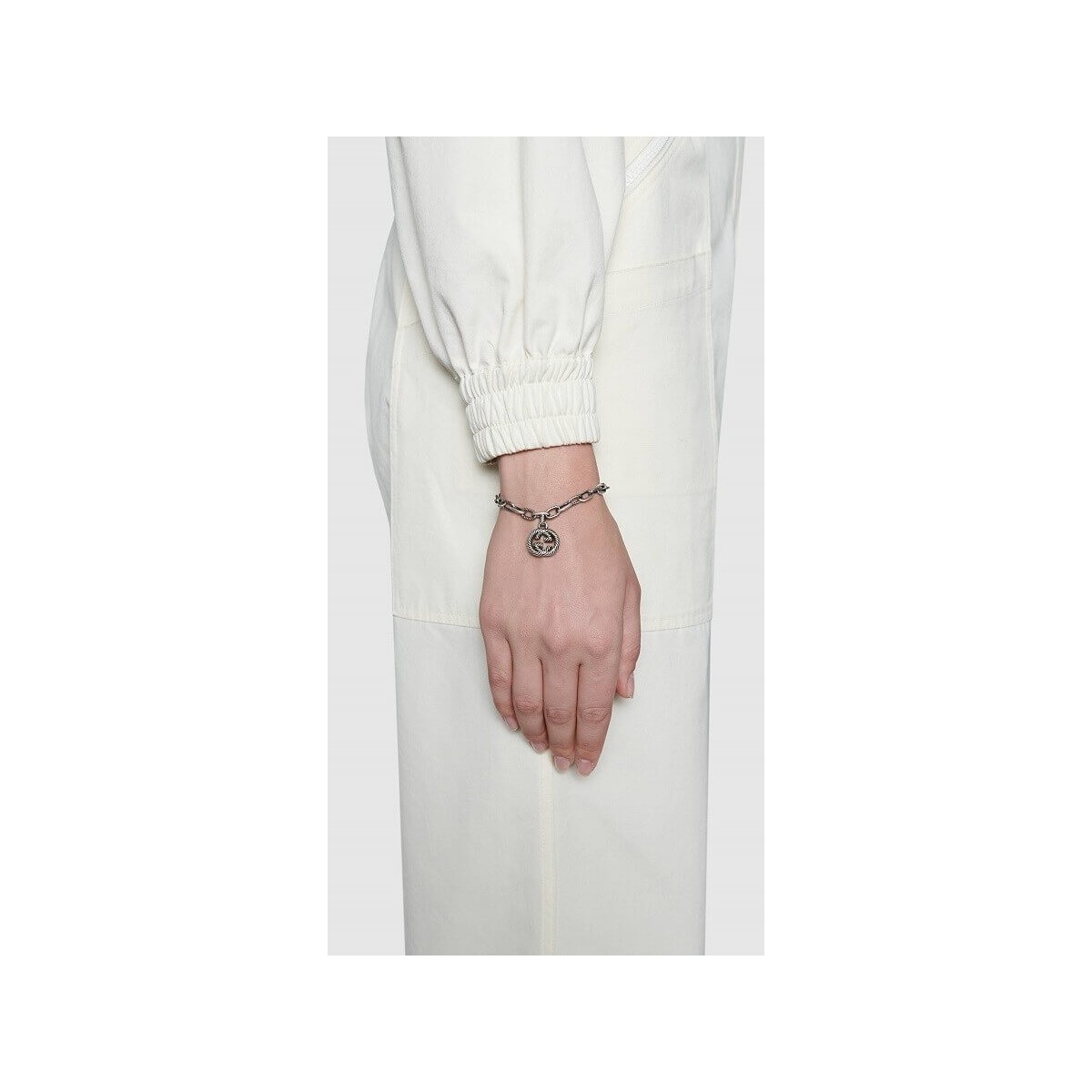Ineinandergreifendes Armband mit ineinandergreifendem G-Anhänger mit Gucci-Logo aus 925er brüniertem Silber und Karabinerverschluss