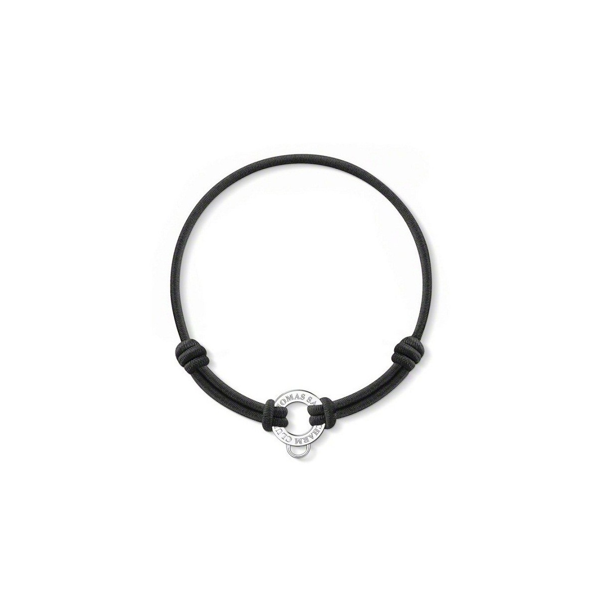 Schwarzes Armband gemacht der eine Stoff beschichtet elastische Schnur mit Schiebe-Knoten, mit denen Sie die Größe des Armbandes anpassen. Der Träger gesichert durch zwei Knoten in der Schleife können Sie bis zu drei Charms verknüpfen.