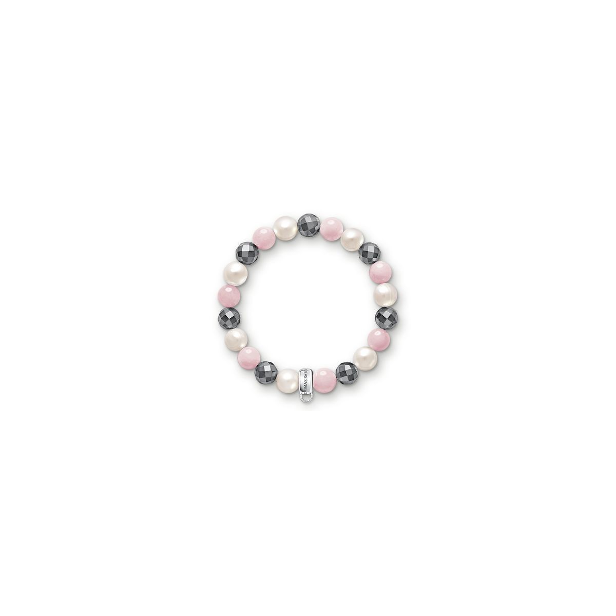 Hämatit facettierten Edelsteine Armband rekonstruiert, rosa Quarz und Süßwasser-Zuchtperlen und Sterlingsilber 925 auf einem Nylon-Gurt montiert und verfügt über ein Designer Reize, die bis zu drei Charms verwendet werden können.