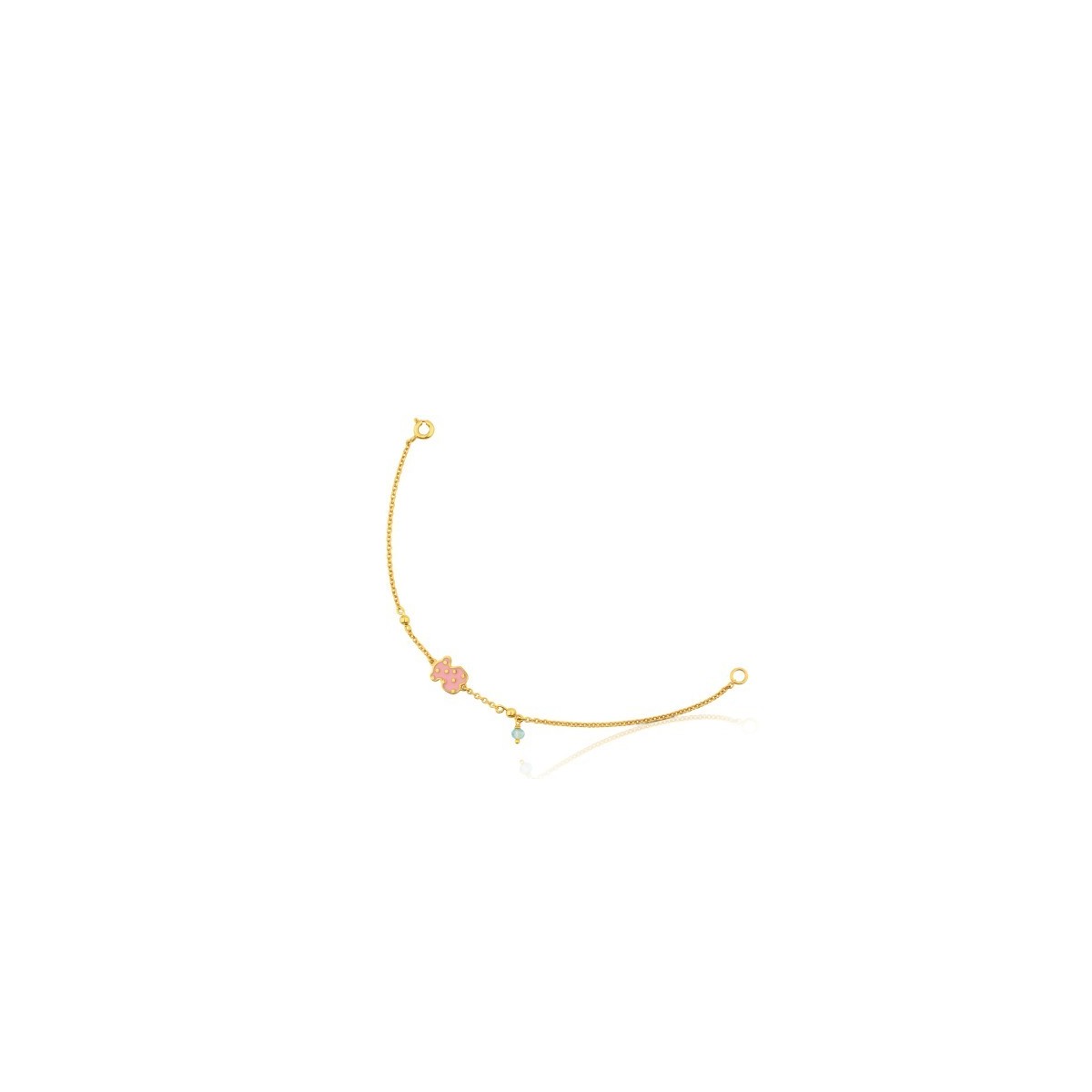 Vermeil vergoldete 925 Silber Armband mit rosa Emaille-Bär und Polka Dot-Details. Länge 17,5 cm