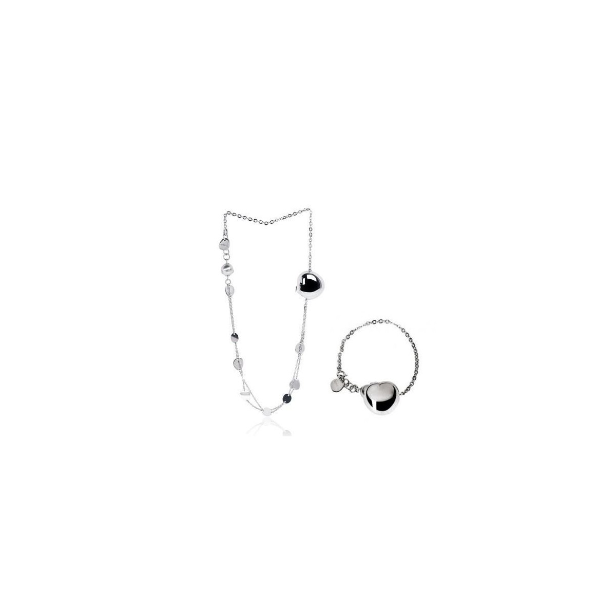 Halskette mit herzförmigen Anhänger in Stahl und gemischten Kettenglied mit Abständen, Möglichkeit der Umwandlung in Armband