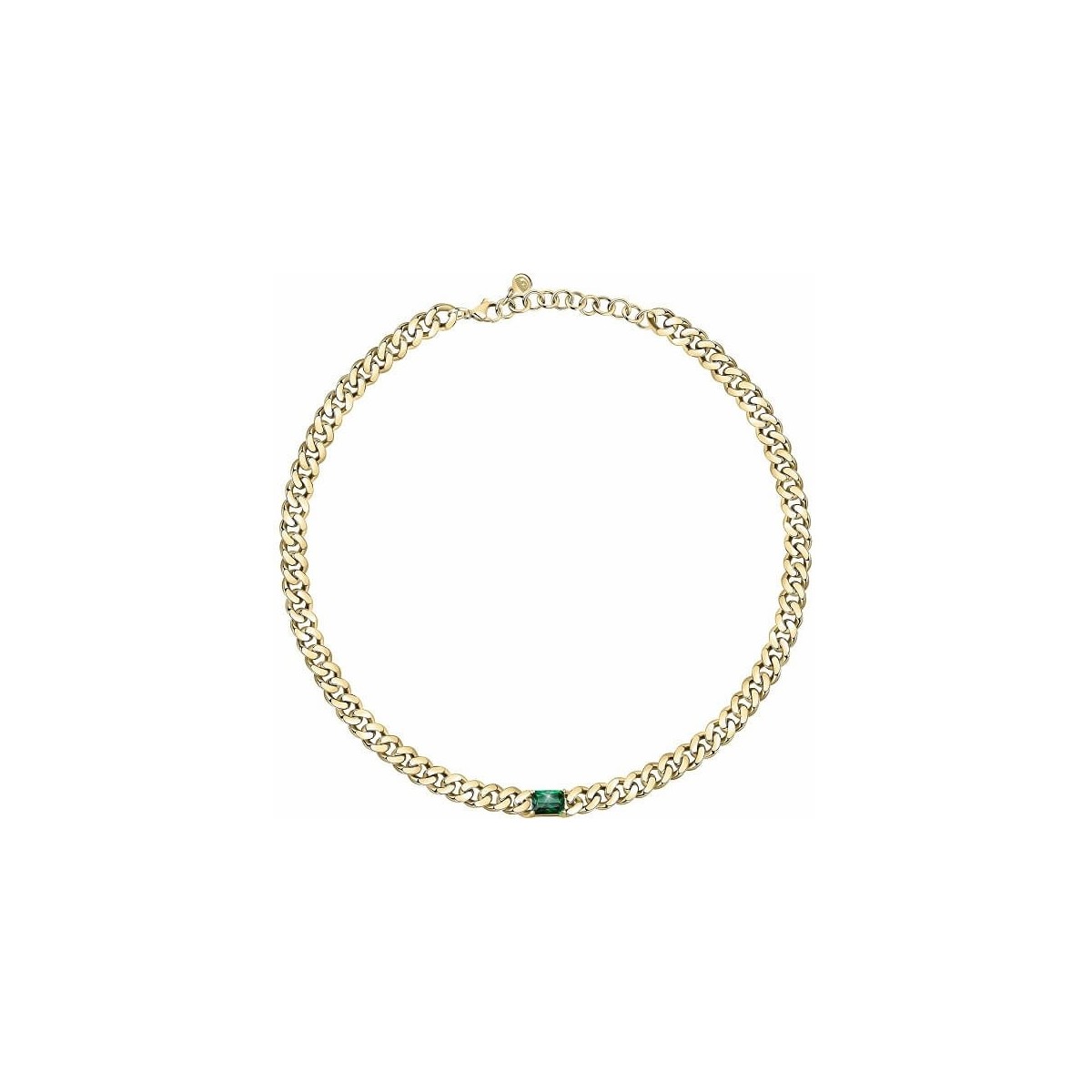 Kettenhalskette aus der Bossy Chain-Kollektion aus vergoldetem Stahl mit zentralem grünen rechteckigen Zirkon