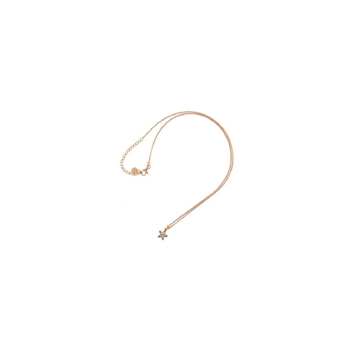 Kettenhalskette mit sternförmigem Anhänger mit Zirkonia-Prägung, in 925 versilbert mit Roségold.