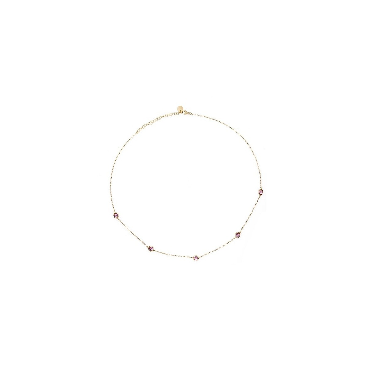 Halskette mit rosa Lünetten aus gelbvergoldetem Silber.
