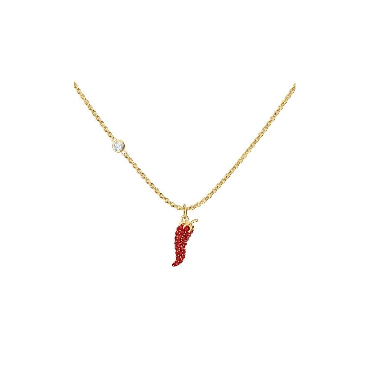 Swarovski Anhänger Halskette aus der Lisabel Kollektion für Damen, Gelbgold überzogen mit rotem Swarovski Kristall Pavé Horn. Das Beste bringt Glück, Geschenkidee für die Person, die Ihnen wichtig ist und der Sie Schutz bieten möchten.