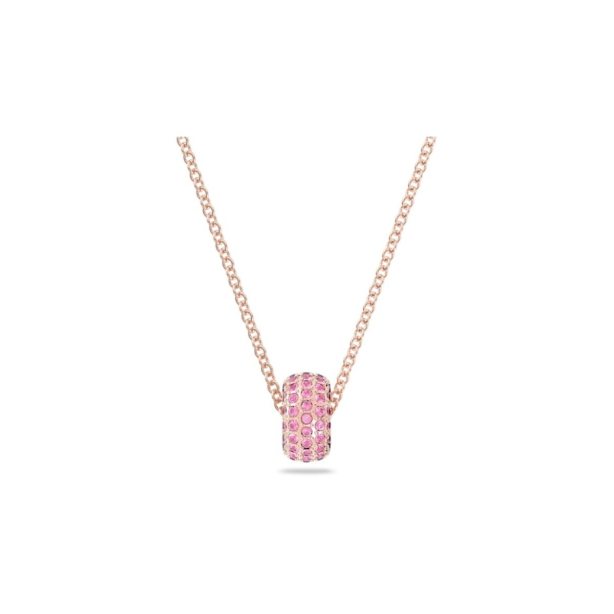 Damenhalskette Girogola von Swarovski aus der Stone-Kollektion mit einem eleganten rosévergoldeten Metallrahmen und einem runden Anhänger mit rosafarbenem Kristallpavé.