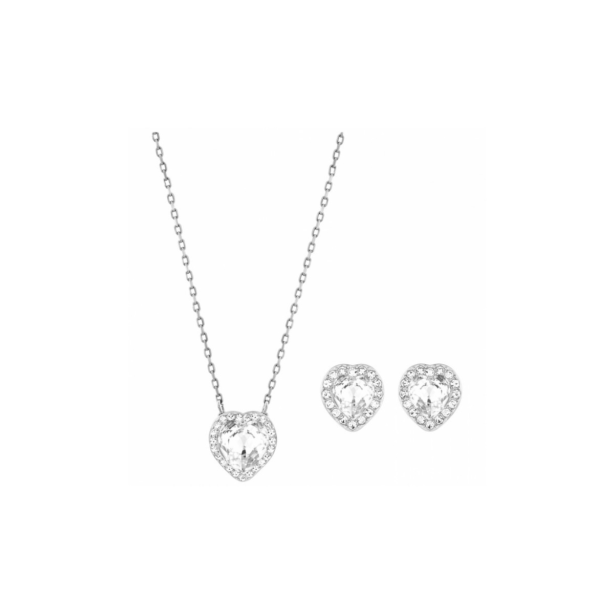 Die romantische Parure interpretiert die Herz-Form-Impreziosendola mit klarem Kristallpavé. Die Sammlung umfasst ein paar Ohrringe und ein Anhänger mit einer Kette. Diese Juwelen sind perfekt zum Hinzufügen einerBeachten Sie die hellen träumen, sondern auch als Geschenkidee!