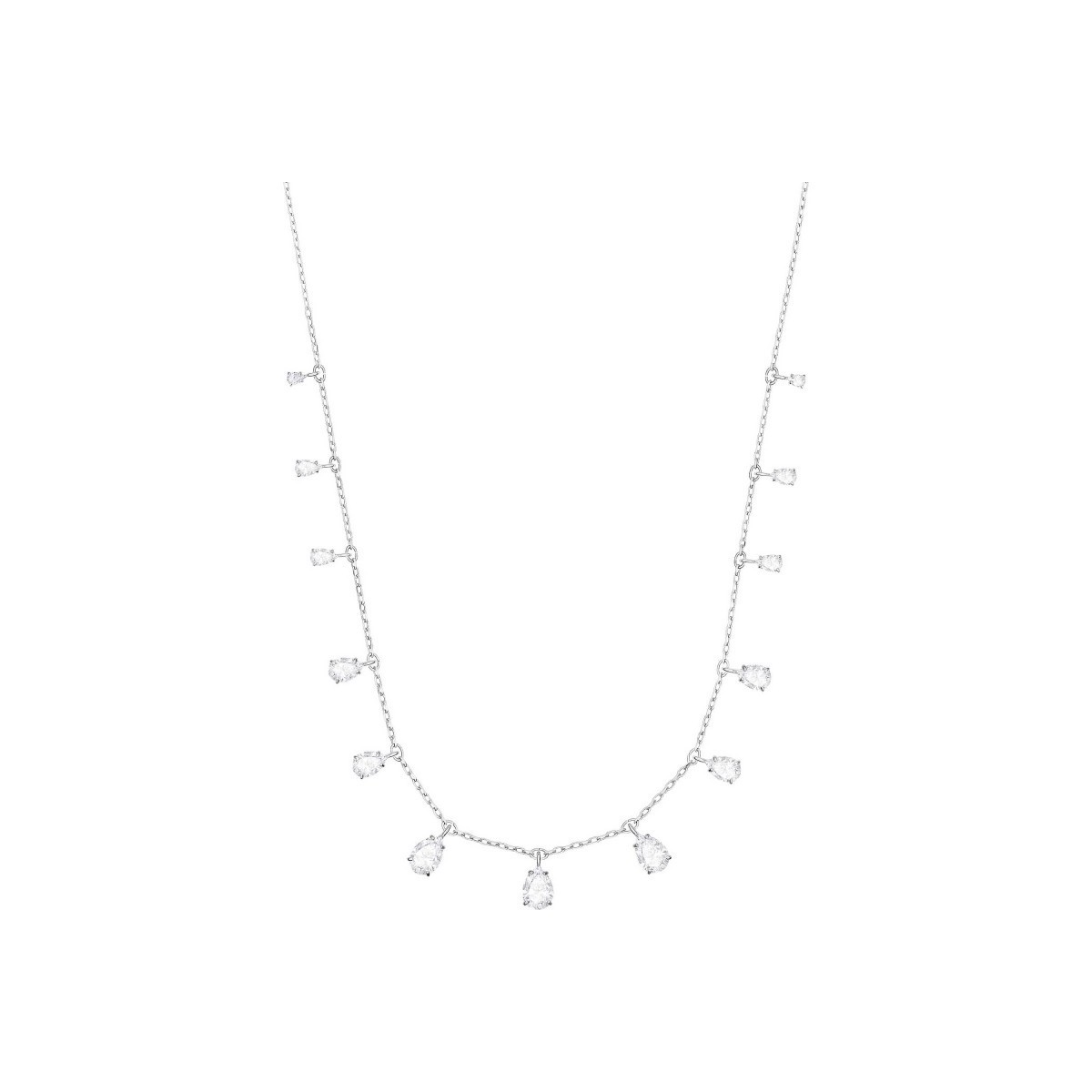 Damen Schoßhalskette, rhodiniert mit weißen Kristallen und Karabinerverschluss mit eingraviertem Logo; einstellbare Länge
