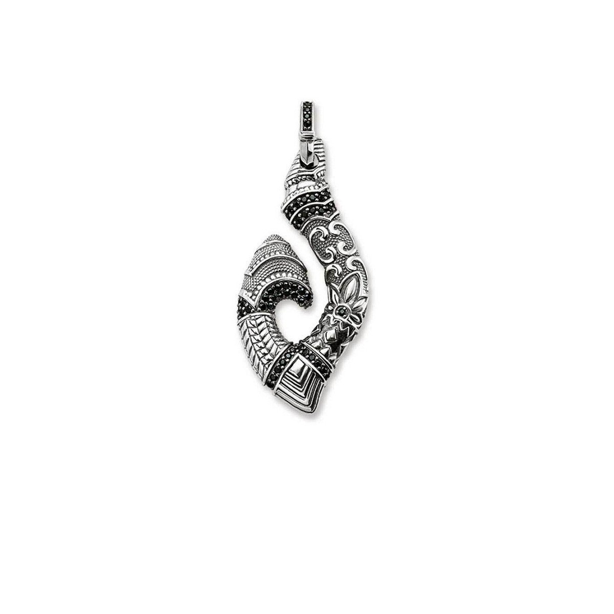 Rebellen bei Herz-Anhänger 925 Silber und Niello, Linie und schwarzen Zirkonia hakenförmigen ebnen synthetische mit Maori