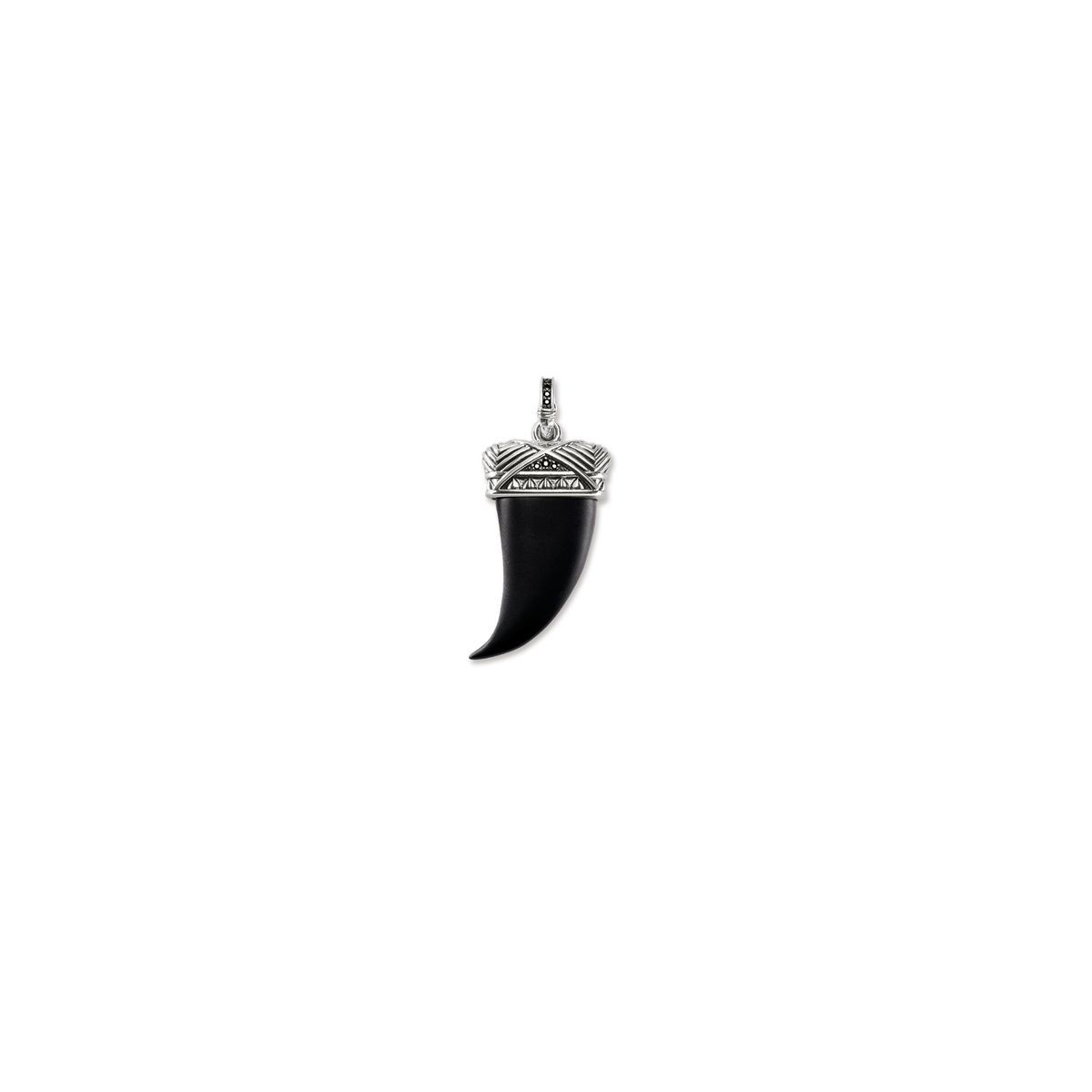 Bei Herz-Anhänger-Line handgeschliffene Tusk-förmigen schwarz Onyx 925 Silber und Niello, montiert auf einer Struktur mit schwarzen Zirkonia, synthetische rebellieren