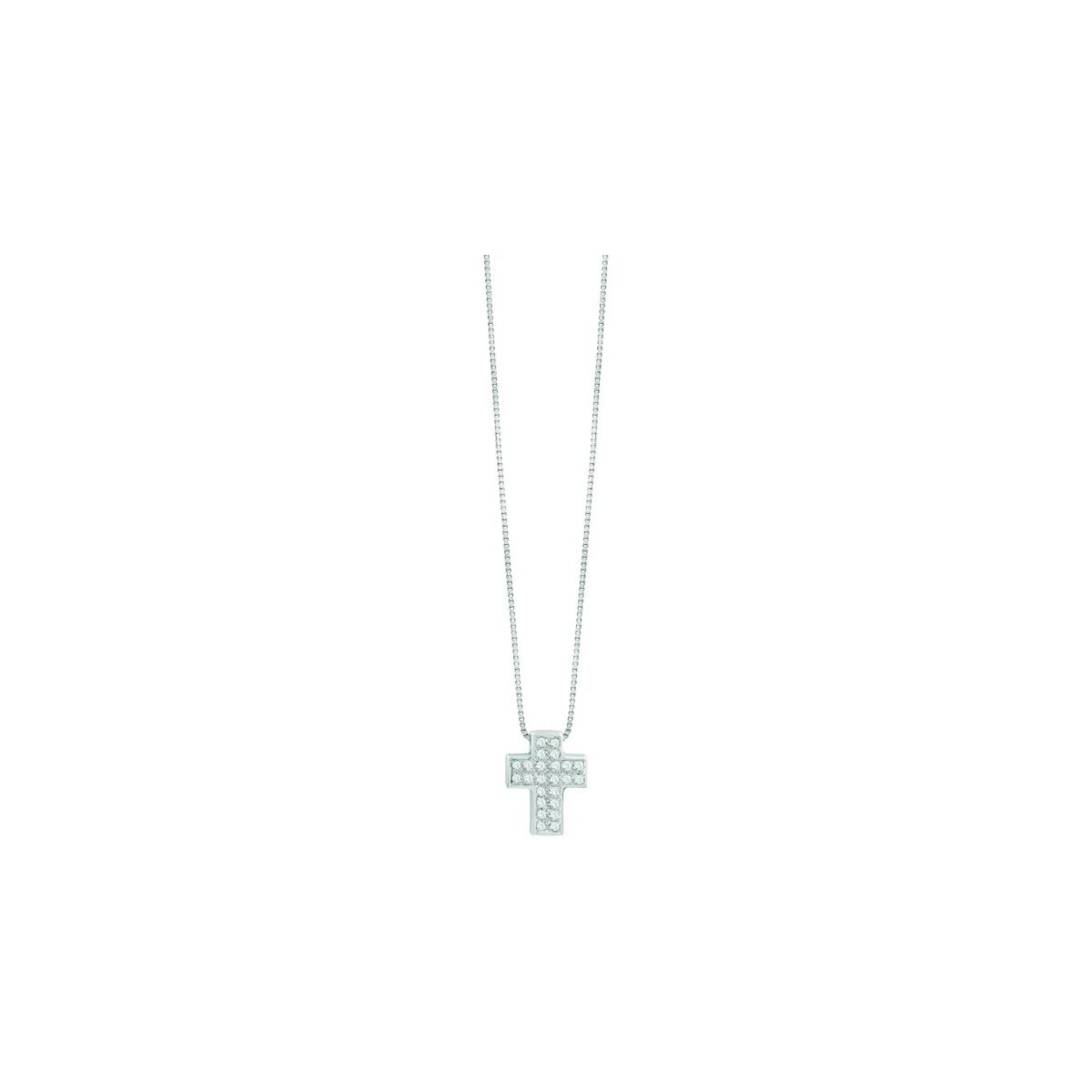 Bliss-Halskette für Damen aus der Le Croci-Kollektion aus 18 Karat Weißgold und Kreuzanhänger mit einem Pavé aus natürlichen Diamanten im Brillantschliff von 0,07 Karat.