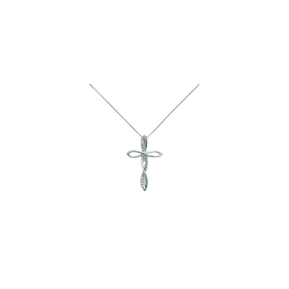 Halskette mit Kreuz aus 18kt Weißgold mit unendlicher Verarbeitung und Naturdiamant mit weißer Diamantkette.