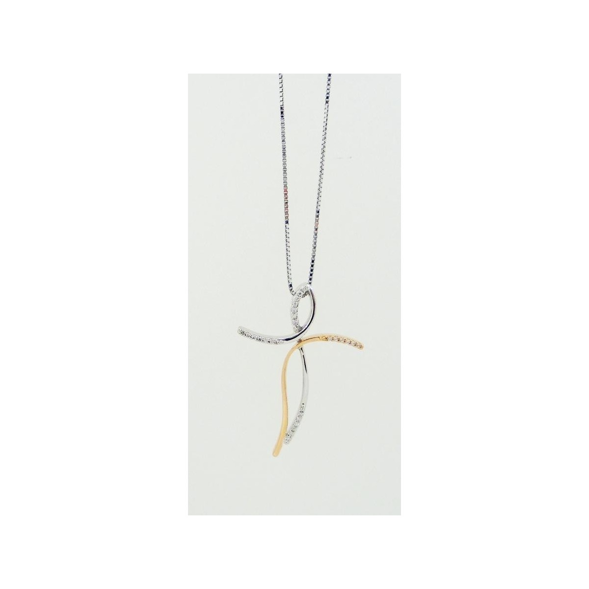 Damen-Halskette mit Kruzifix stilisierte weiße und rose goldene Runde natürliche Diamanten, brillante Schliff mit 750 ‰.