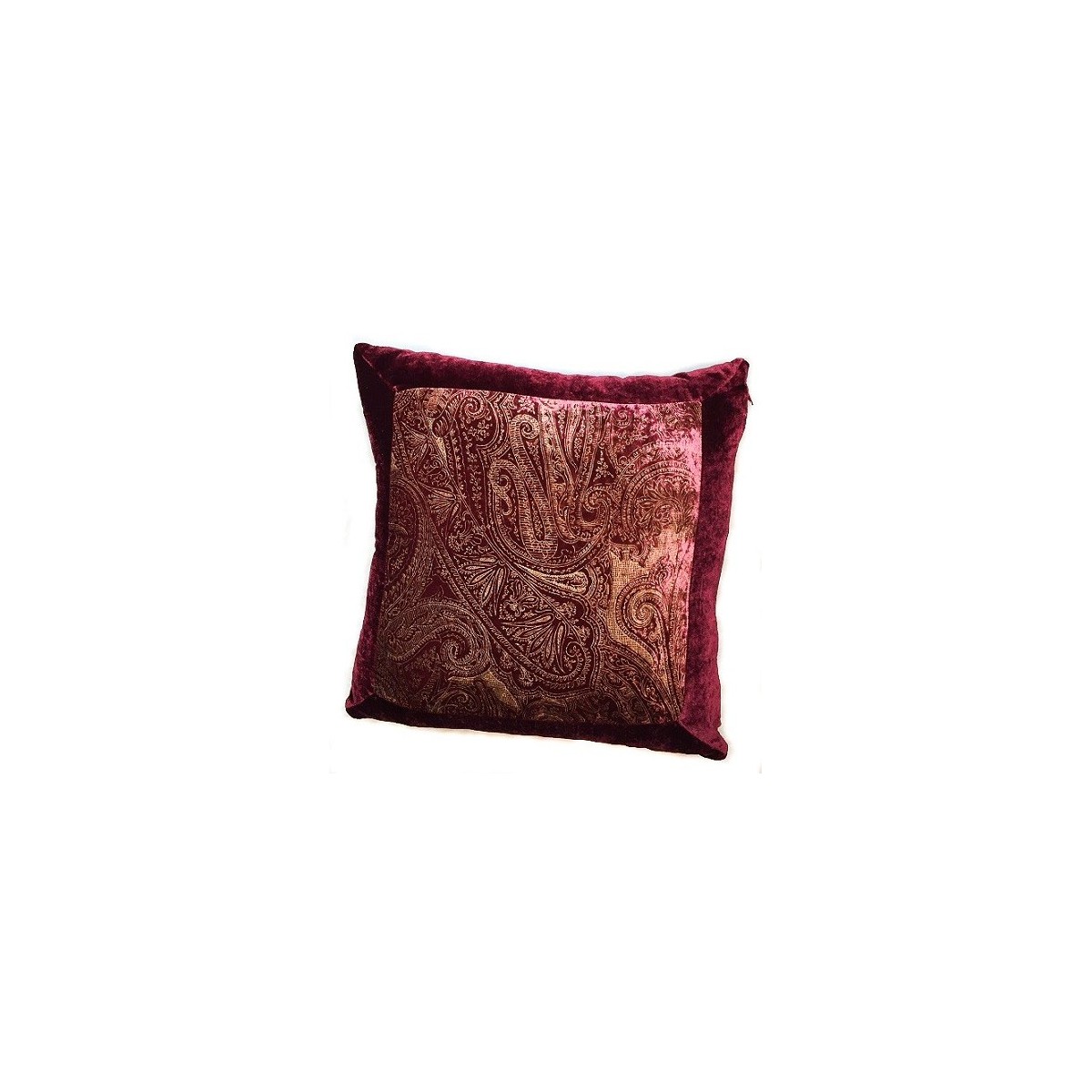 Stoff Kissen Paisley-Motiv mit rotem Samt weinrot kantige - Größe 45x45 cm