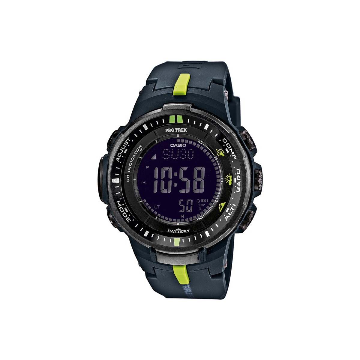 Ein Sensor misst den Luftdruck (Messbereich: 260/1.100 hPa) und auf dem Display als Symbol angezeigt. Es ist somit möglich, im Voraus wissen, den Wetter-Trend.