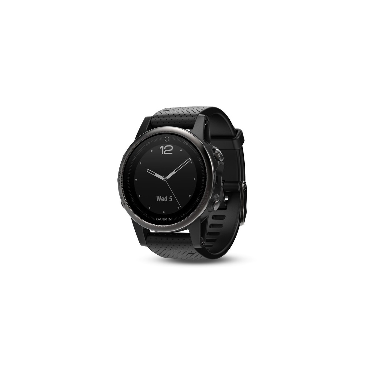 - Smart Notification1 und Wireless Connectivity über Bluetooth® - Wi-Fi® Wireless-Konnektivität (nur Sapphire-Versionen) - Unterstützt Bluetooth-Sensoren von Drittanbietern - Kompatibel mit Garmin Connect ™ Mobile - Apps, Widgets und Watchface über Connect IQ ™ herunterladen - Anpassbare Dialer über die Garmin Face It ™ App - Auswechselbare QuickFit ™ Riemen     - Geeignet für kleinere Handgelenke Der Fēnix 5S hat einen kleineren Fall und wählt als die fēnix 3-Serie, während er immer die gleiche Auflösung beibehält (218x218 px). Das 1.1 "Farb-Chroma-Display und das 42mm-Gehäuse eignen sich für die dünnsten Handgelenke oder für diejenigen, die mehr diskrete Formen lieben.   - Erkennung der Herzfrequenz vom Handgelenk Fēnix 5S verfügt über die modernste Garmin Elevate ™ Pulsfrequenzmesstechnik. Dieser Sensor misst den 24/7 Herzschlag, ohne einen Brustgurt tragen zu müssen.   - Entworfen, um den schlechtesten Bedingungen standzuhalten Der fēnix 5S kommt mit einer EXO ™ Antenne für GPS / GLONASS Satellitenempfänger und hochauflösendem, blendfreien, farbcodierten Chroma ™ Display mit LED-Hintergrundbeleuchtung für den Zugriff auf Daten in jedem Lichtzustand. Darüber hinaus verfügen die Sapphire-Versionen über ein hoch beständiges Saphirglas. Im Vergleich zu den bisherigen Serien hat fēnix 5S eine noch leistungsstärkere Batterie: Es dauert bis zu 9 Tage im Uhrmodus, bis zu 14 Stunden im GPS-Modus und bis zu 35 Stunden im UltraTrac®-Modus.