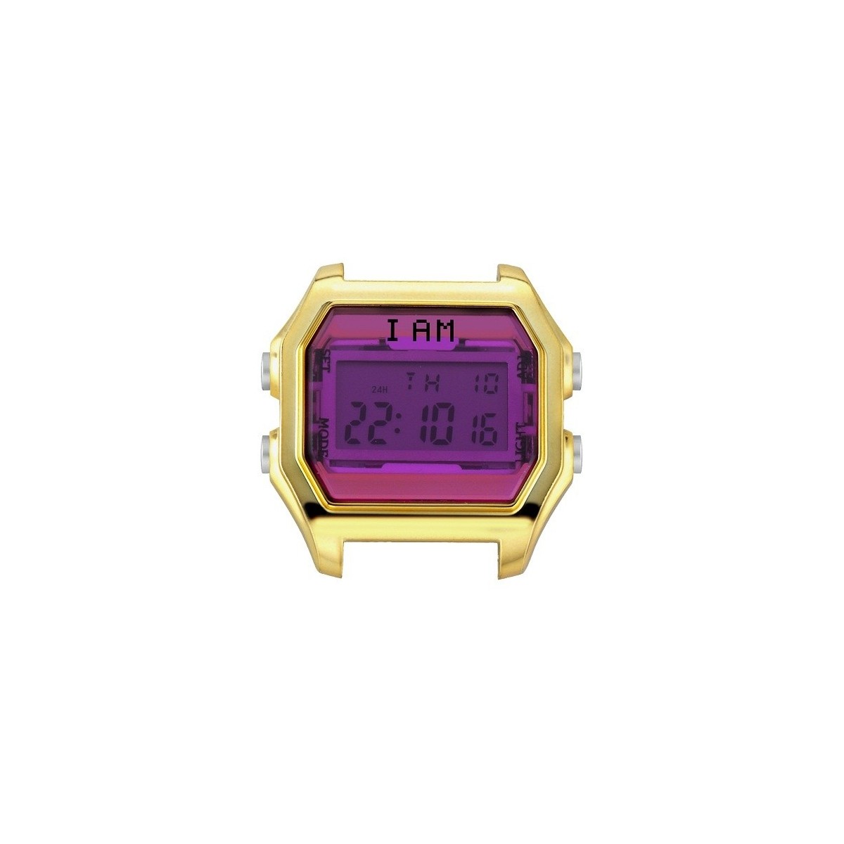I AM Mittelgroße Uhrenbox aus Polycarbonat mit goldenem Metalleffekt, vier silbernen Knöpfen, Fuchsia-Zifferblatt und digitalem Quarzwerk - IAMTHEWATCH