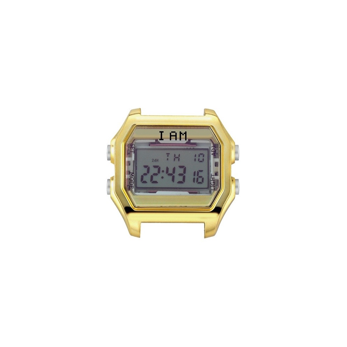 I AM Mittelgroße Uhrenbox aus Polycarbonat mit goldenem Metalleffekt, vier gelben Knöpfen, goldenem Zifferblatt und digitalem Quarzwerk - IAMTHEWATCH
