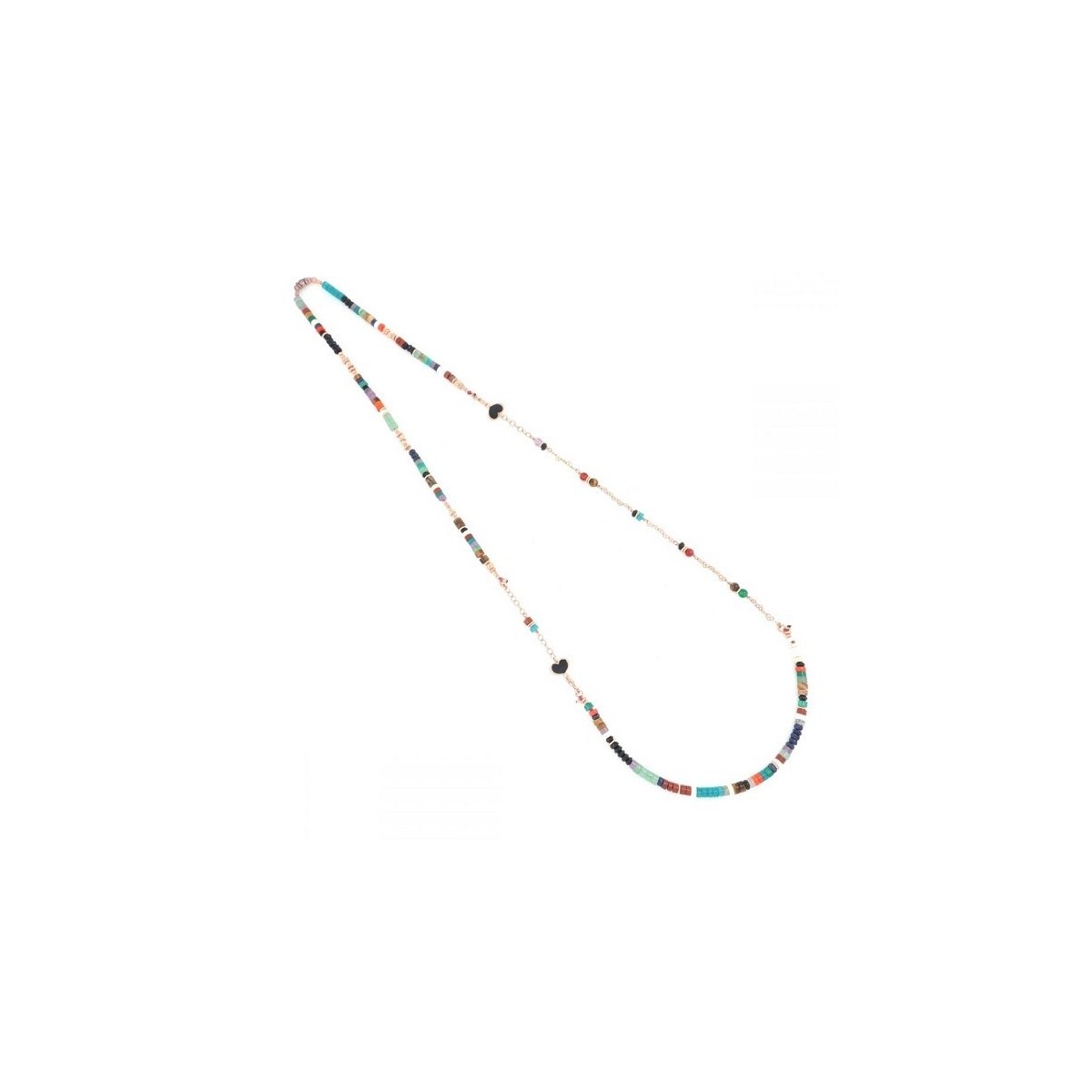 America Hippy doppelt roséfarbene Halskette mit Maman Et Sophie Multicolor-Edelsteinen