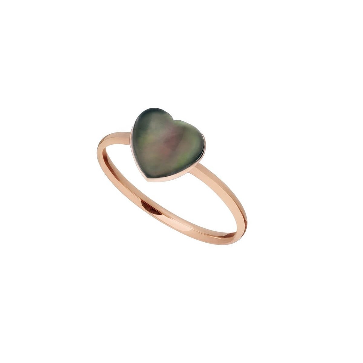 Damenring Mimì aus der Zabette-Kollektion aus 9 Karat Roségold und einem kleinen zentralen Herzen mit einem Wams aus dunklem Perlmutt. Ringgröße 16